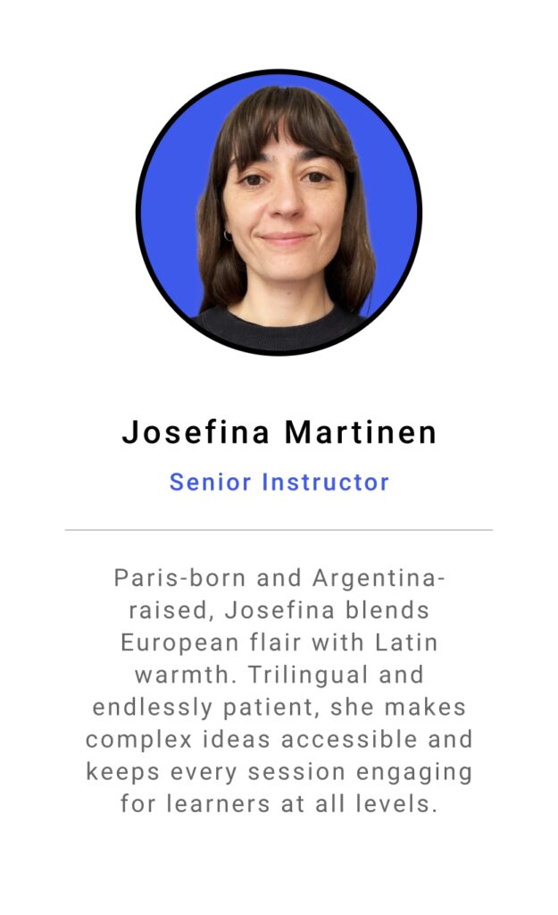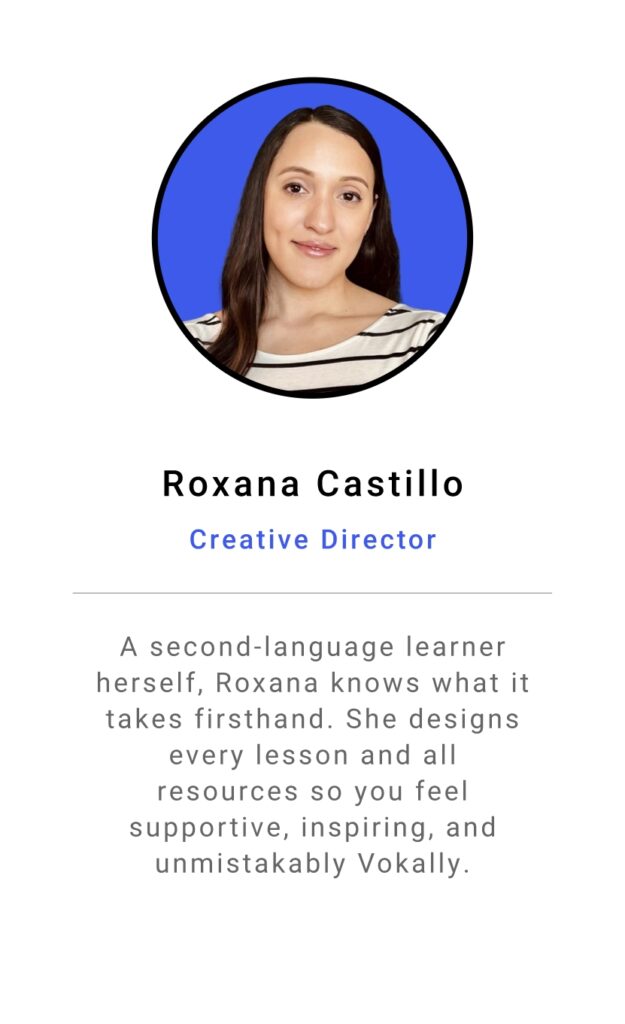 All Vokally instructors are bilingual, CEFR-aligned educators united by one goal: turning knowledge into speech, starting with your very first class.