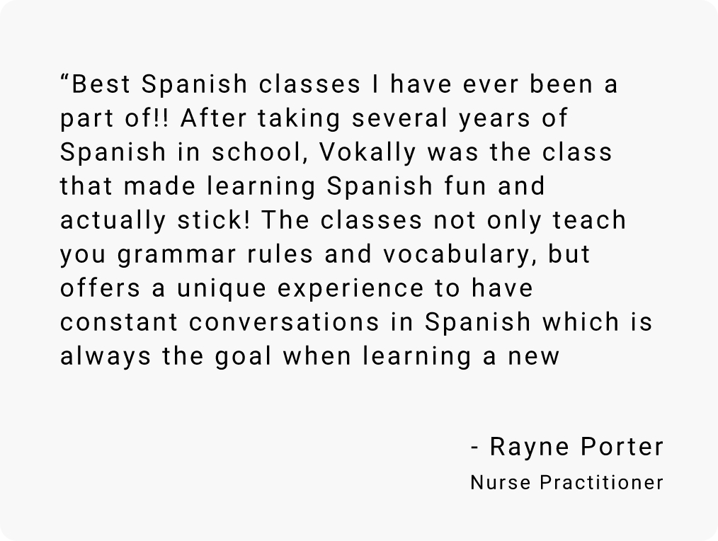 Unlike most apps or passive courses, Vokally offers a fully guided, live learning experience. You’ll work in small 2:1 classes with expert instructors, participate in cultural immersion events, and follow a proven 12-level curriculum designed specifically for adults. This is not just about memorizing, it’s about speaking Spanish confidently in real life.